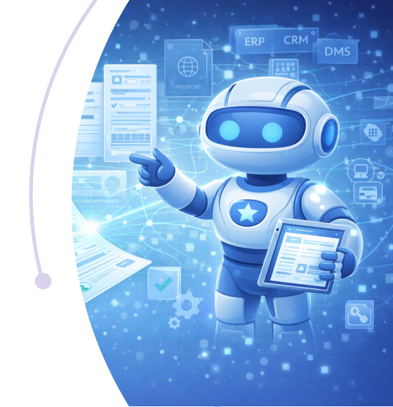 Scanned documents sit in folders or legacy tools. ERP, CRM, and DMS systems stay disconnected — no single source of truth.