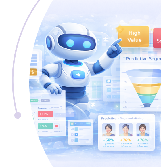 AI categorizes sentiment and themes automatically. Run predictive segmentation models to identify segments and drivers of behavior.