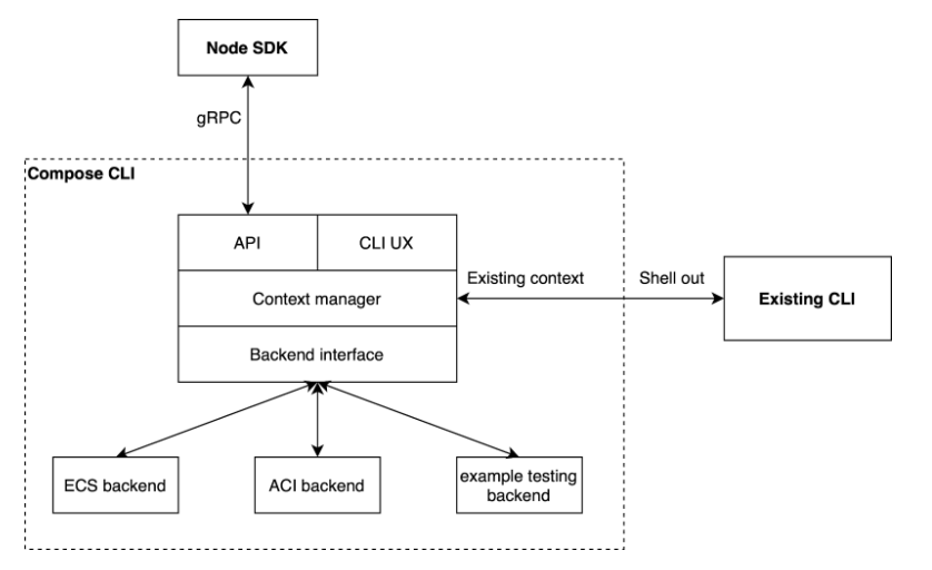 The Compose CLI switches which backend is utilized for the command or API call based on the Docker Context that the user selects. This allows transparently transmitting commands to the existing CLI that use existing contexts.