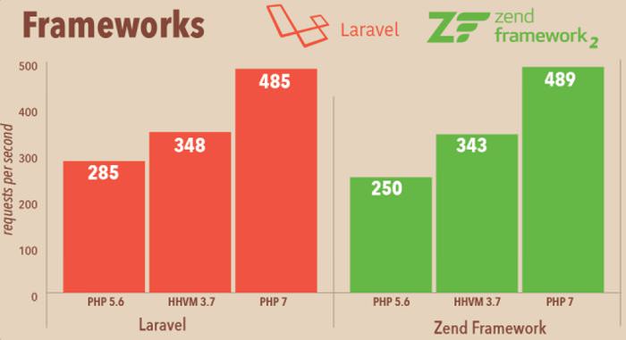 The New PHPNG engine has the easily distinguishable advantage, the significant performance enhancement. The developers team of PHPNG re-innovate the Zend Engine, remarkably enhanced memory consumption and brought just-in-time compilation (JIT) that allows compilation at the run time instead of prior to execution. This results into extraordinary performance presented by the Zend Performance Team in below diagram. With the help of PHP 7 not only, the code will be executed quicker but you will need fewer servers to serve the same number of users.