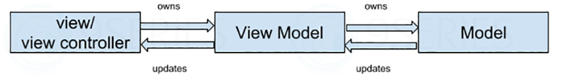 4. ViewModel: ViewModel binds the Model and ViewController, it’s the heart of MVVM design pattern. It provides the connection between the model class and the view/view controller. View Model is capable of observing changes in Model and synchronize itself with the events.