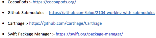 It is very certain that everyone is using some third party libraries in their application. So for that, you should use one of the dependency managers from the ones that are already available. We usually prefer CocoaPods which has the vast collection of libraries and easy integration facilities, you can use any of below depending on the requirements.